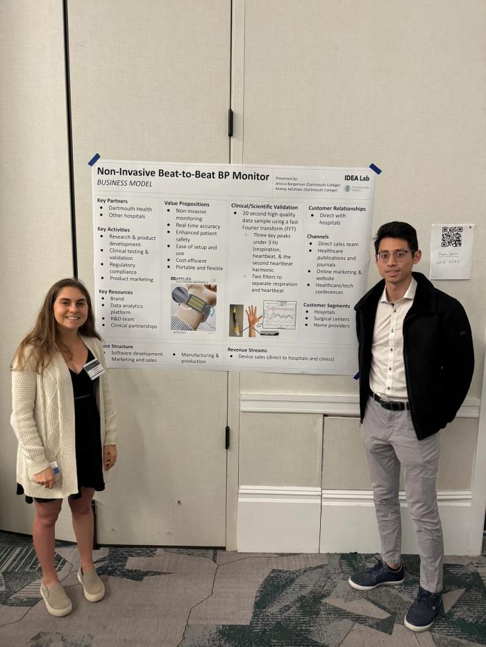Three IDEA Lab projects (Airway Noodle, Veri-Needle, and Piezoelectric Sensor for Arterial BP Measurements [pictured]) were selected to present at the Student Innovation Showcase as part of the 2024 Northern New England MedTech Conference.